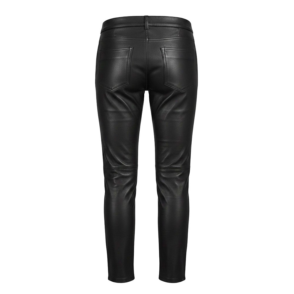 We craft these pants from premium quality genuine leather. The surface feels smooth, supple, and luxurious. The leather develops character over time, making each pair even more distinctive with wear. The structure remains strong and flattering, holding its shape while adapting naturally to your movement. The slim fit cut enhances your silhouette and creates a sharp, powerful profile without restricting comfort.