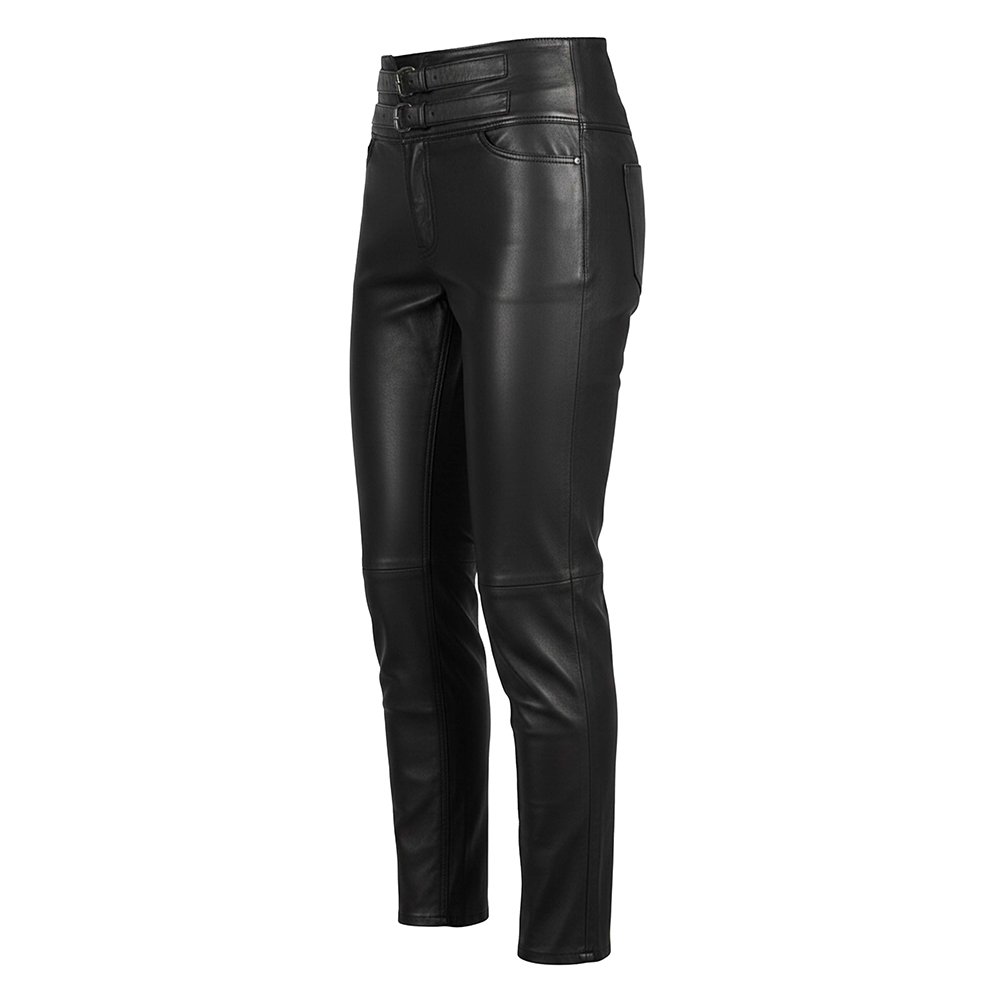 The standout feature is the double buckle waist straps. This signature detail delivers vintage rock attitude and rebellious edge. It adds visual impact and elevates the overall design. The clean front finish keeps the look sleek and structured. A durable front zipper closure ensures a secure and reliable fit.