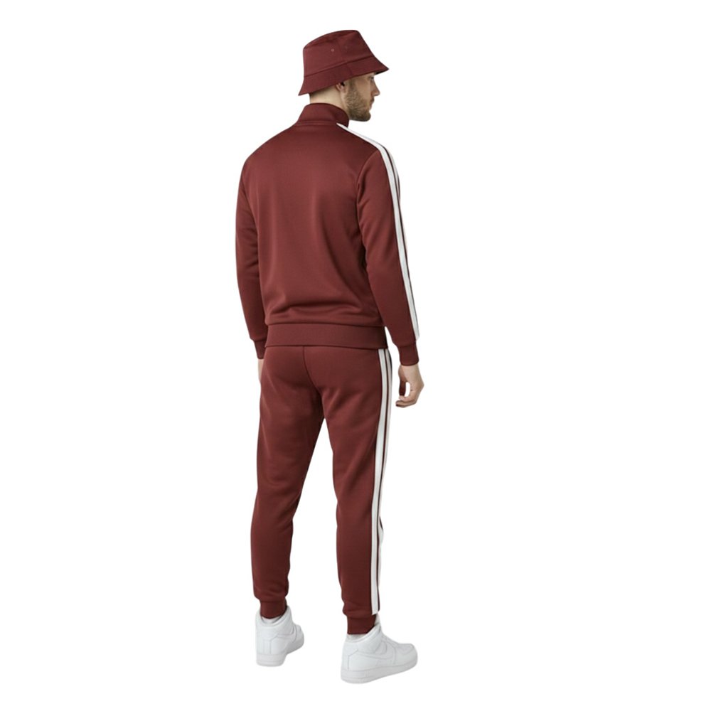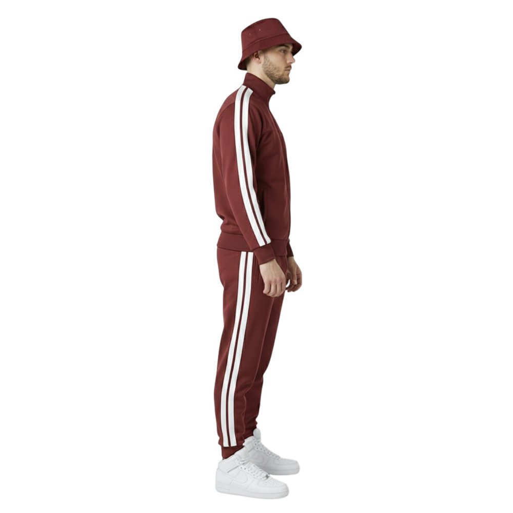Add the Burgundy Track Jogger Set with White Side Stripes to your collection today and enjoy the perfect blend of comfort, style, and modern streetwear fashion.