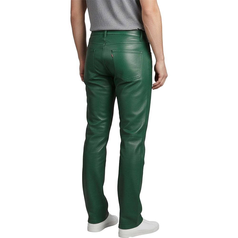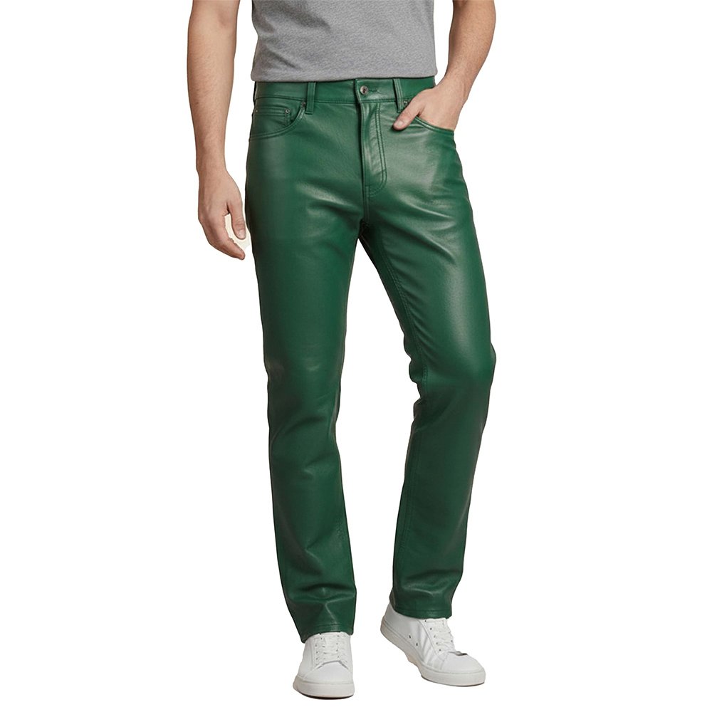 Green Leather Jeans Style Pants are made for bold men who lead with confidence. We craft these pants from premium quality leather. The texture feels smooth and strong. The finish adds a sharp, modern shine. The material holds its shape and moves with your body. You get comfort without losing structure. You get durability without sacrificing style.