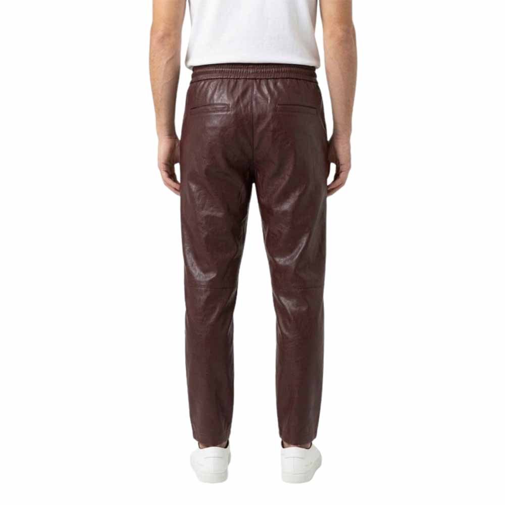 Upgrade your everyday style with the Men’s Classic Burgundy Leather Drawstring Joggers. These pants combine luxury leather material with modern comfort. They offer a clean and stylish look for men who value premium fashion.