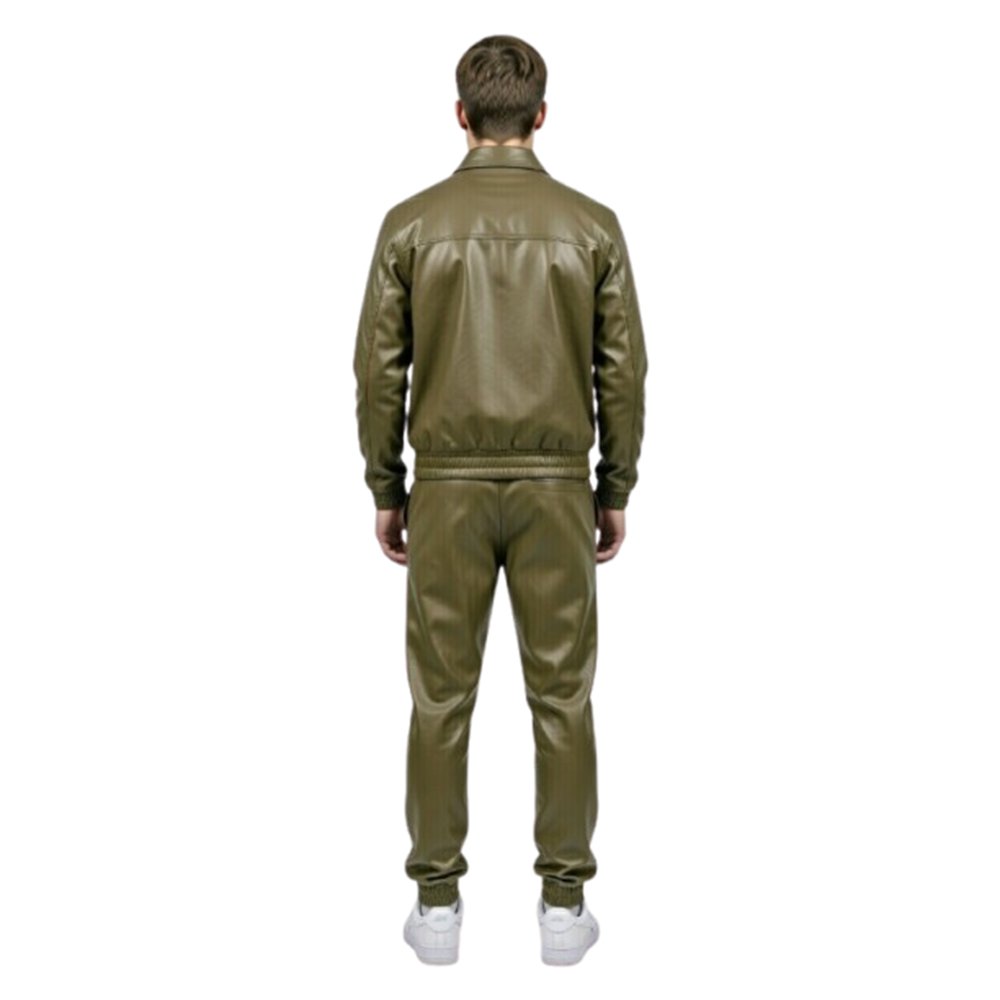Men’s Premium Olive Green Leather Jogger Set