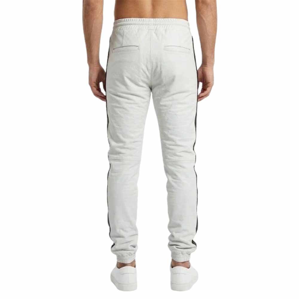 The Men’s White Leather Joggers with Black Contrast Side Stripe & Drawstring offer a perfect blend of comfort, durability, and modern fashion.