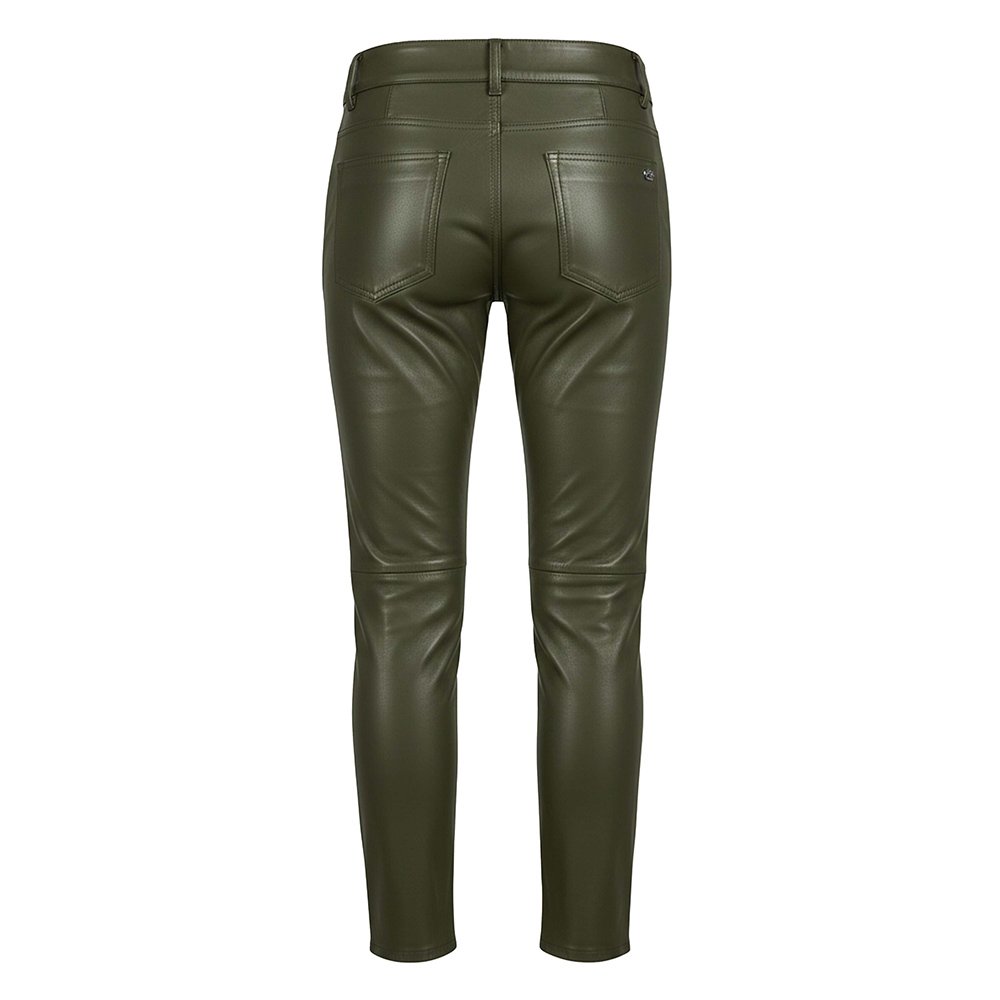 We craft these pants from premium quality genuine leather. The surface feels smooth, supple, and luxurious. The leather develops character over time, making each pair even more distinctive with wear. The structure remains strong and flattering, holding its shape while adapting naturally to your movement. The slim fit cut enhances your silhouette and creates a sharp, powerful profile without restricting comfort.