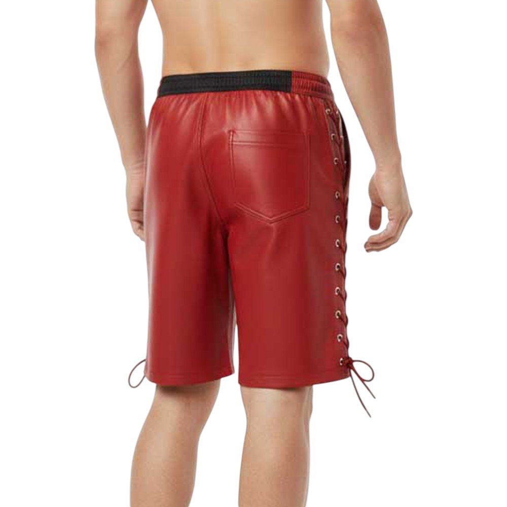 If you want a fashion piece that stands out, these Red Leather Shorts with Side Laces are a perfect choice. They combine comfort, durability, and bold style in one striking design.