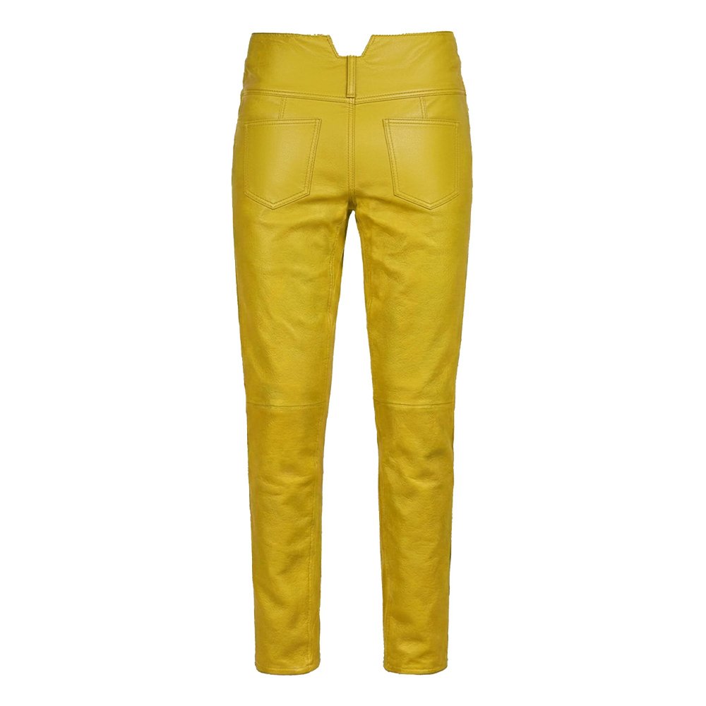 Pair these Yellow leather pants with a black shirt for dramatic contrast. Wear them with boots for a commanding presence. Add a leather jacket for full rockstar impact.